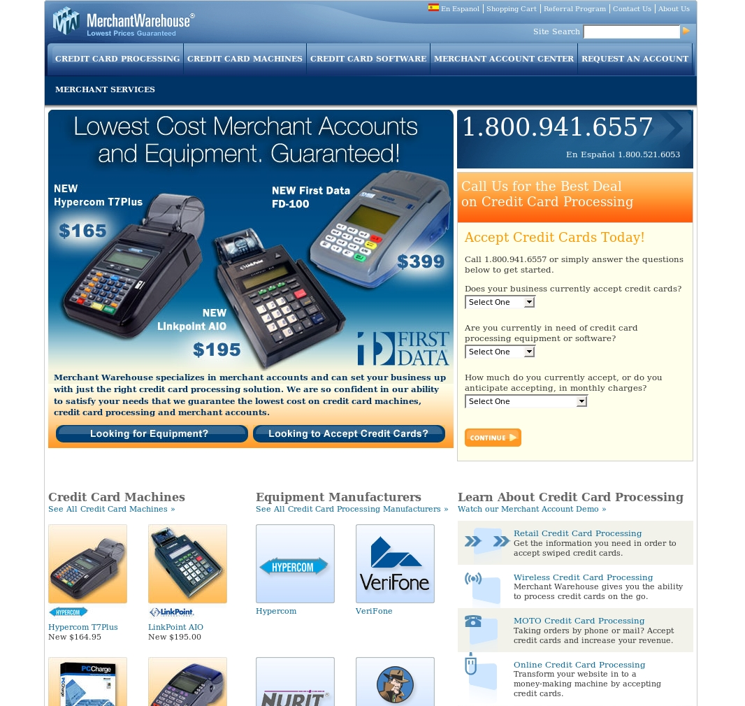 Offering merchant accounts, credit card processing, credit card machines, and credit card software for businesses.